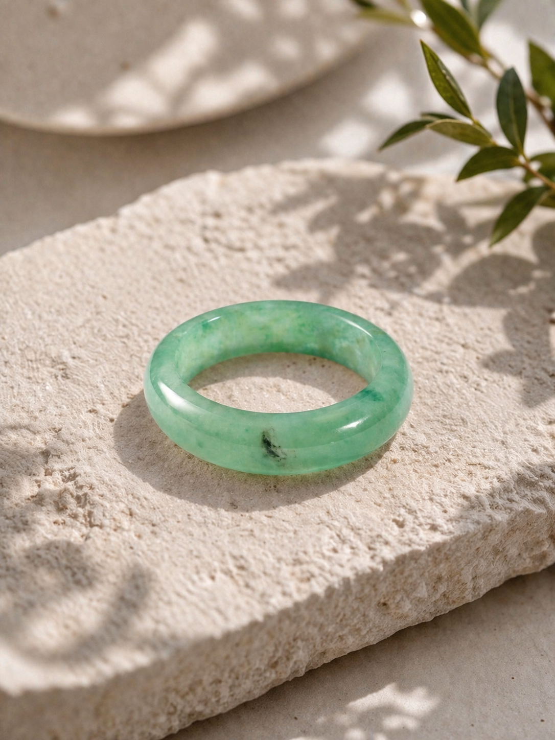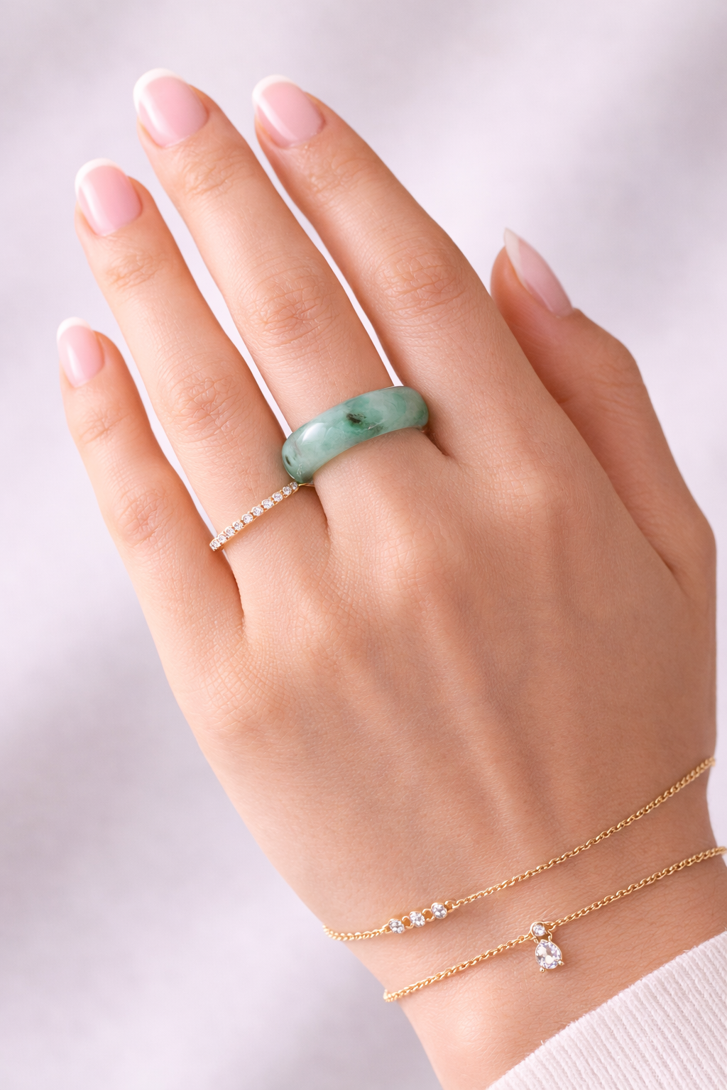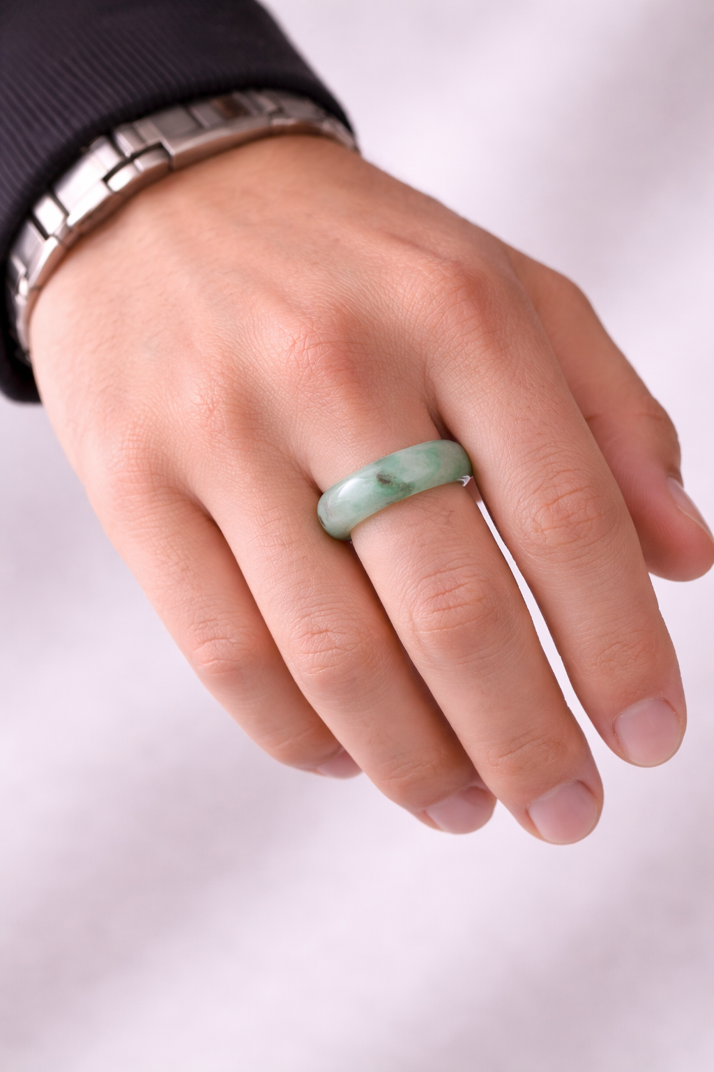 With a fine to medium jade grain, the ring carries a smooth, balanced presence clean in look, yet rich in natural detail.