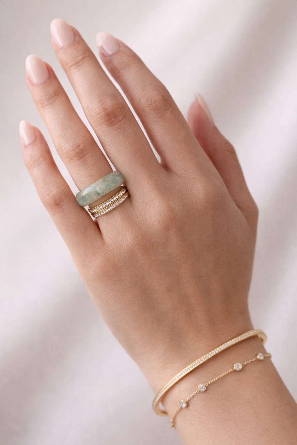 Product photos are taken under professional studio lighting. Due to natural jade characteristics and lighting conditions, color may appear slightly different in person.